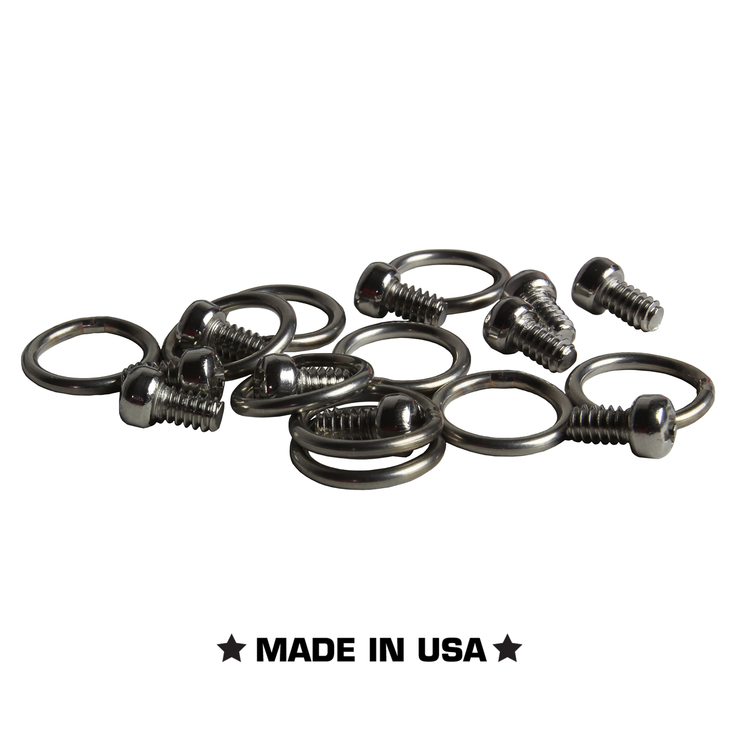 These hand-welded, stainless steel rings are incredibly strong. Kit includes 10 rings and 10 fillister screws for 5/16” standard fiberglass bowfishing arrows.