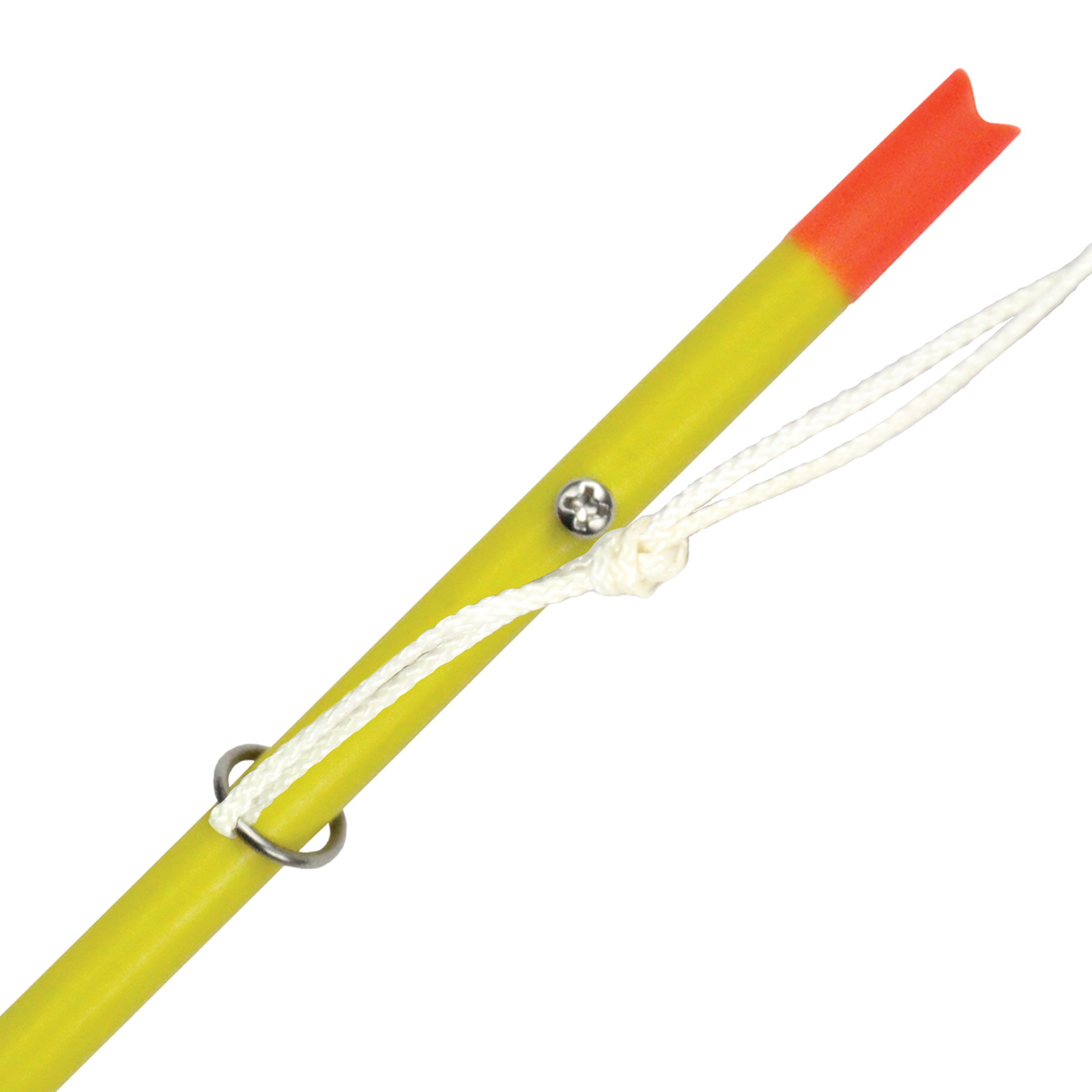 Just tie your line to the ring. Nock the arrow with the screw head facing up while keeping the ring in front of your arrow rest. When the shot is taken, the arrow moves through the ring, to the screw, taking the line with it. The line stays in front of the arrow rest at all times. This ensures that your line cannot come in contact or tangle with the bowstring, which can be the cause of arrow snapback!