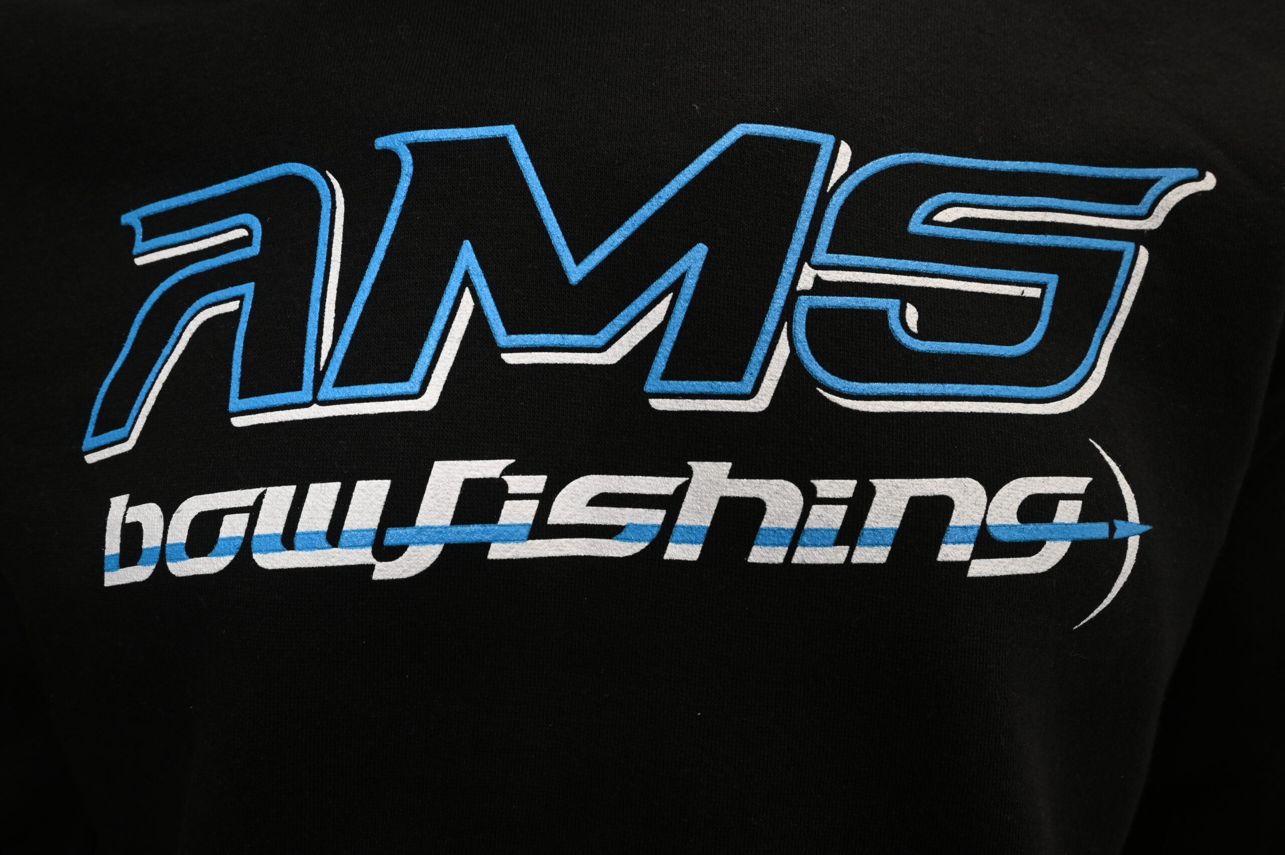 Kick off bowfishing season in style with our AMS Slant Logo Hoodie. The new Slant Hoodie provides ultimate comfort and performance. Whether you’re wearing it on the water or lounging at home, you will notice that all AMS products, including our apparel, have one thing in common. Quality. Rep the #1 Bowfishing Brand with pride. Complete with our 13″ AMS Slant logo on the front, and a 14″ AMS logo imprinted down the left sleeve.