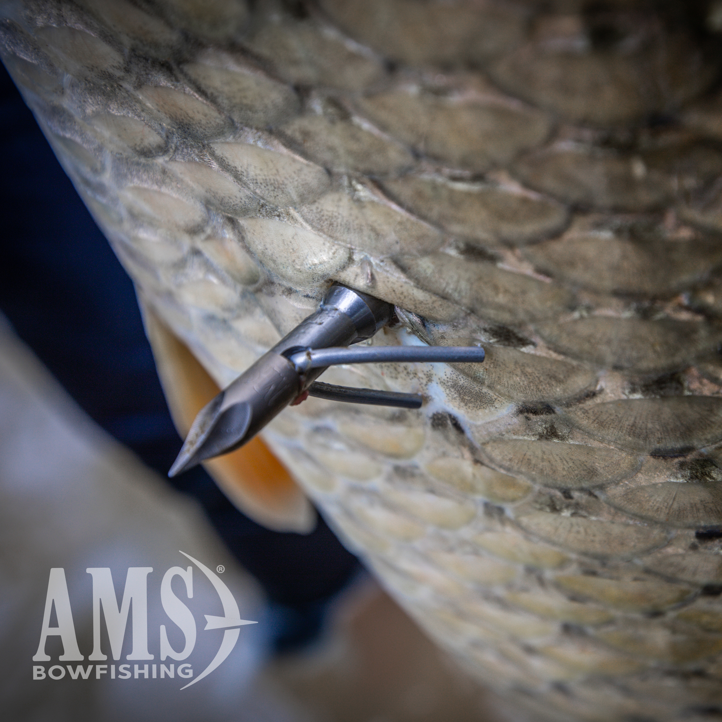 This shaft coupled with the Chaos® FX point make a great combination for all shooters, including those that shoot at a lower draw weight. They have a super short body and two heavy-duty, rounded wire barbs that make a small entry hole and engage with minimal penetration. Barbs pivot to the side to hold the fish with a 1” x .875” holding area.