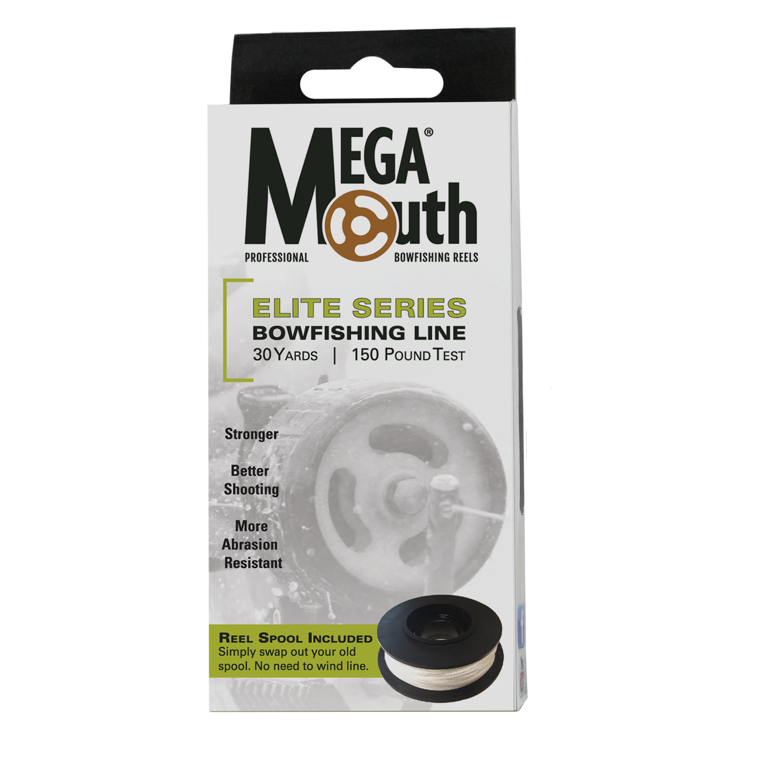 For Original MegaMouth® reels: Always make sure to have plenty of extra line in the boat so that your next bowfishing adventure doesn’t stop short. This line is already wound on the custom line spool for original MegaMouth® reels. Simply swap out your old spool, reassemble and you’re ready to keep shooting fish. This will not work with the v2.0 MegaMouth® reels.