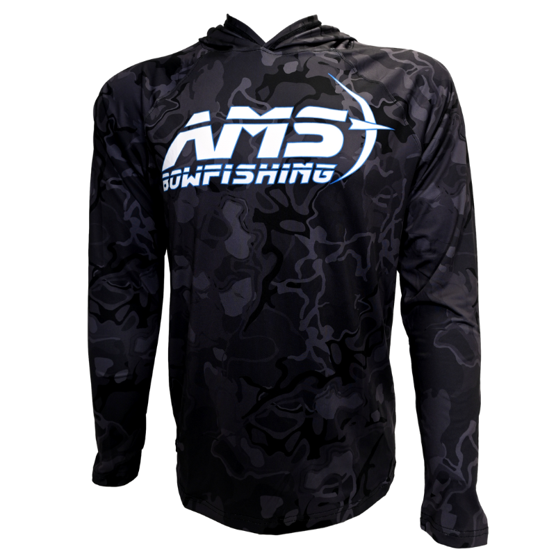 Kick off bowfishing season in style with our UV Camo Hooded Jersey. These jerseys provide ultimate comfort and performance. They are also UPF 50+, which means they block 98% of UV rays when being worn AND they provide both UVA and UVB protection. Whether you’re wearing it on the water or lounging at home, you will notice that all AMS products, including our apparel, have one thing in common. Quality. Rep the #1 Bowfishing Brand with pride.